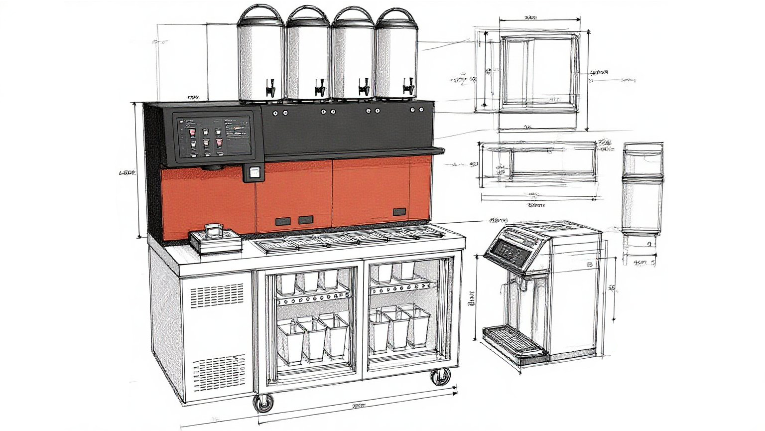 - 搭配封口机、冰箱、操作台等设备,构成高效吧台。